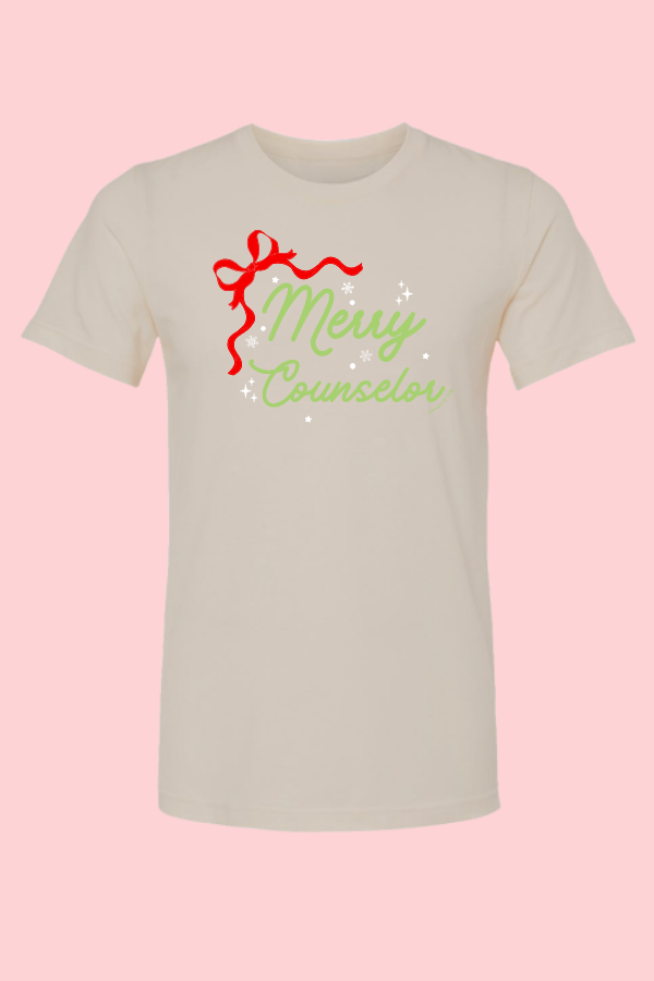 Celebrate the season with a little extra joy and a whole lot of heart in our Red Bow Merry Counselor Tee. Designed with a bold red bow and a festive “Merry Counselor” design, this tee is the perfect way to spread holiday cheer while honoring the incredible work counselors do every day.