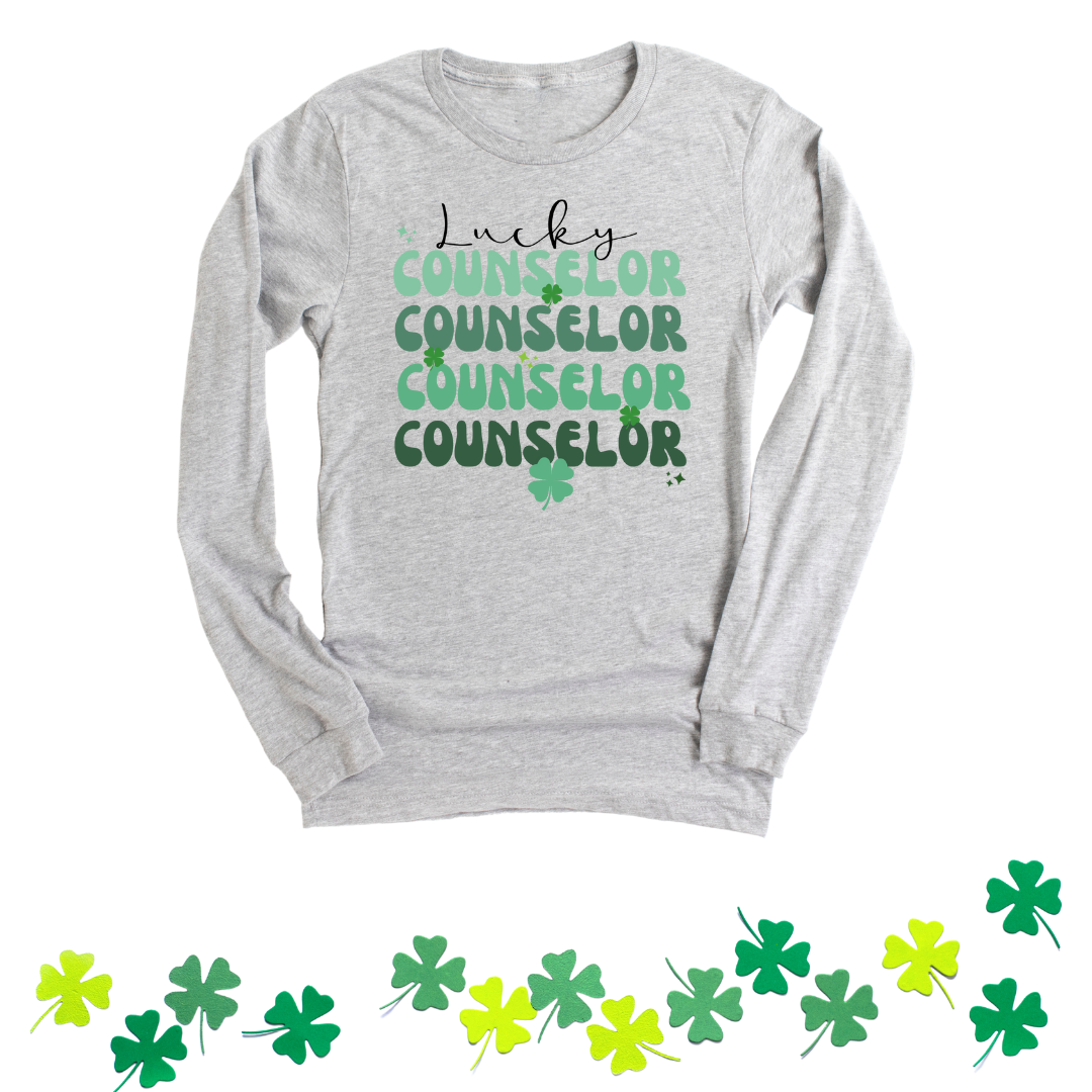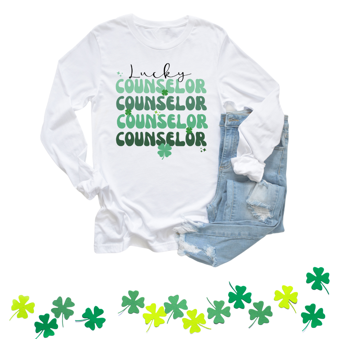 Get your green with this fun long sleeve! This tee is lightweight, extremely soft, and comfortable. Style this graphic tee with a skirt, shorts, jeans, or leggings to get the perfect lucky look!
