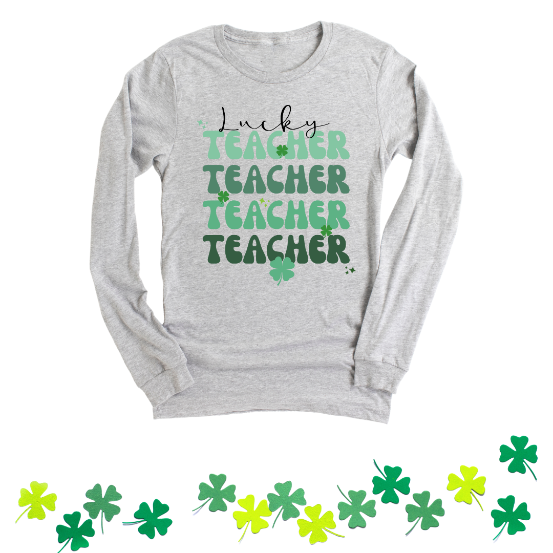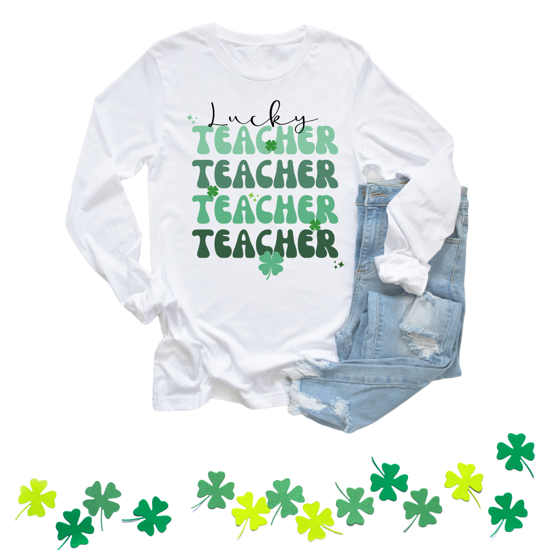 Get your green with this fun long sleeve! This tee is lightweight, extremely soft, and comfortable. Style this graphic tee with a skirt, shorts, jeans, or leggings to get the perfect lucky look!