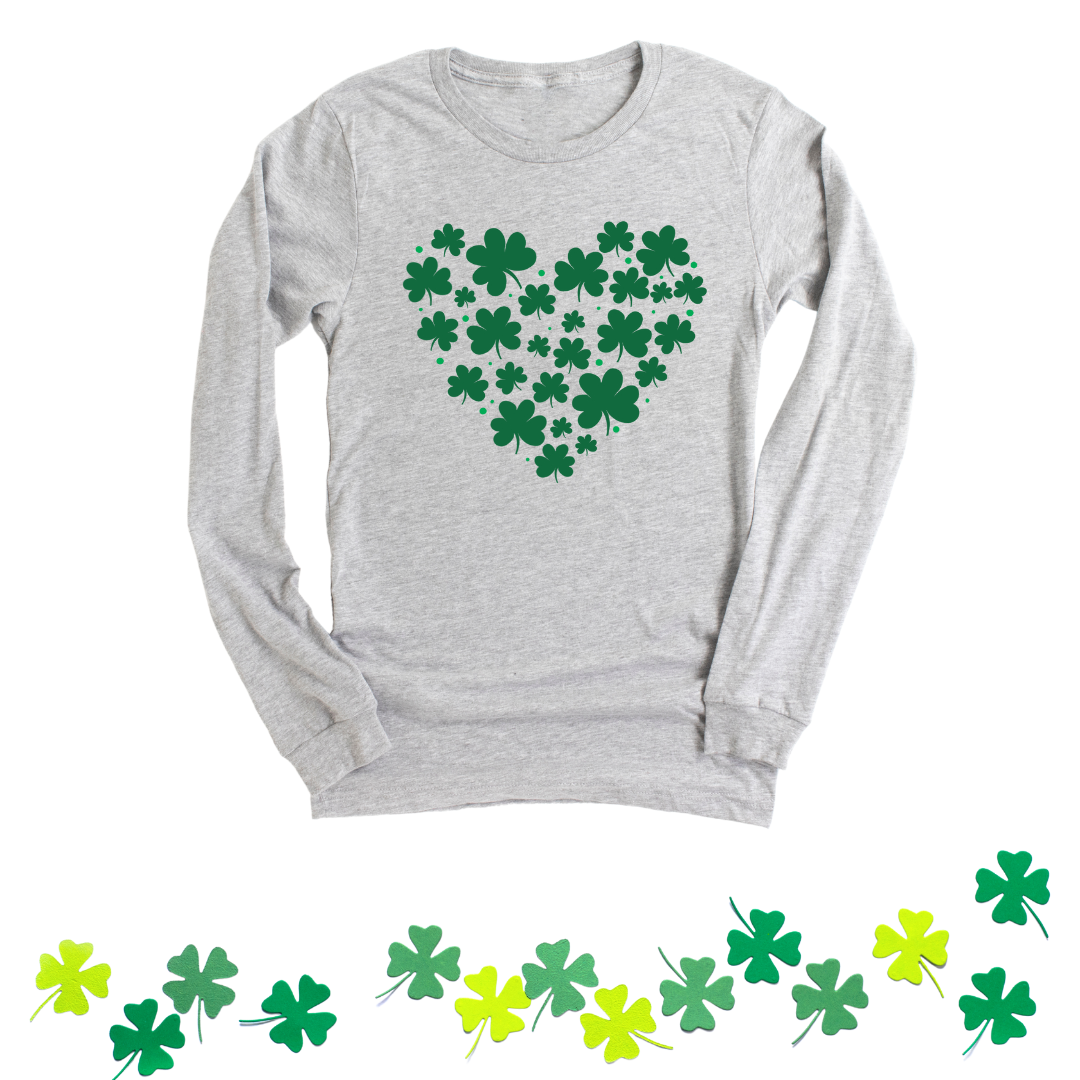 Get your green with this fun long sleeve! This tee is lightweight, extremely soft, and comfortable. Style this graphic tee with a skirt, shorts, jeans, or leggings to get the perfect lucky look!
