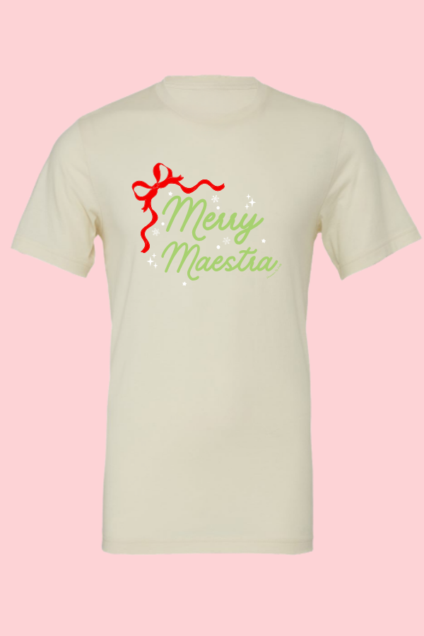Bring all the cheerful classroom vibes this season with our Red Bow Merry Maestra Tee — the sweetest mix of holiday magic and teacher pride. Featuring a bold red bow and a festive “Merry Maestra” design, this tee is made to shine during December spirit days, holiday classroom parties, and every merry moment in between.